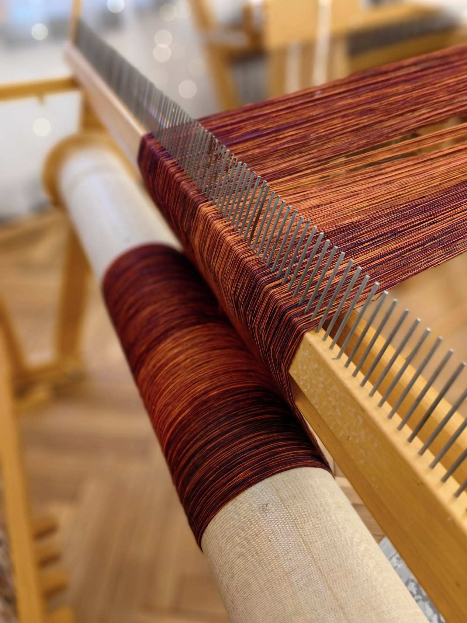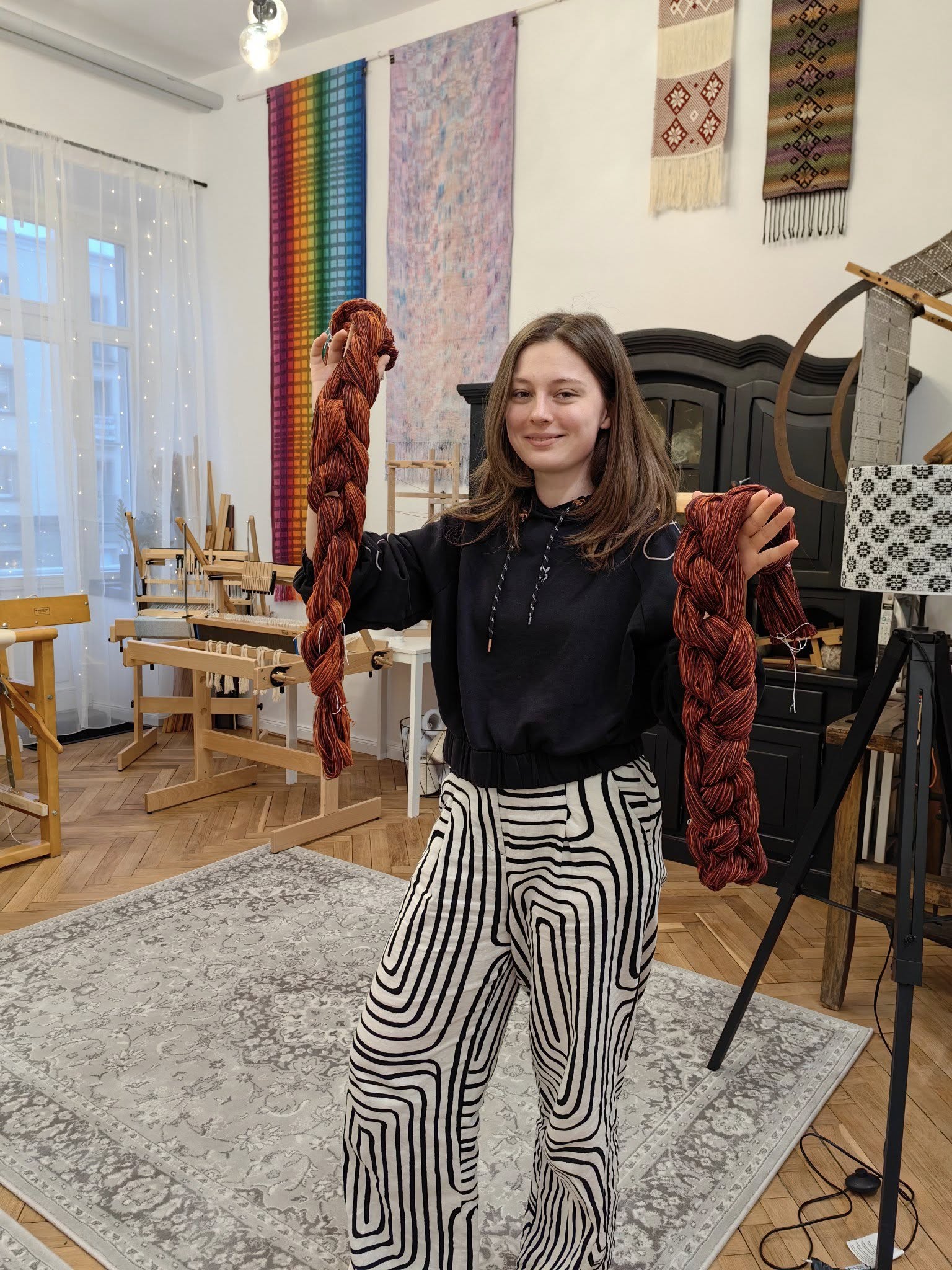 Asia przeszła przez cały proces tworzenia tkaniny od podstaw – samodzielnie odmierzyła osnowę, nałożyła ją na krosno, a potem układała nitki w taki sposób, by stworzyć wybrany przez siebie wzór. 🧶