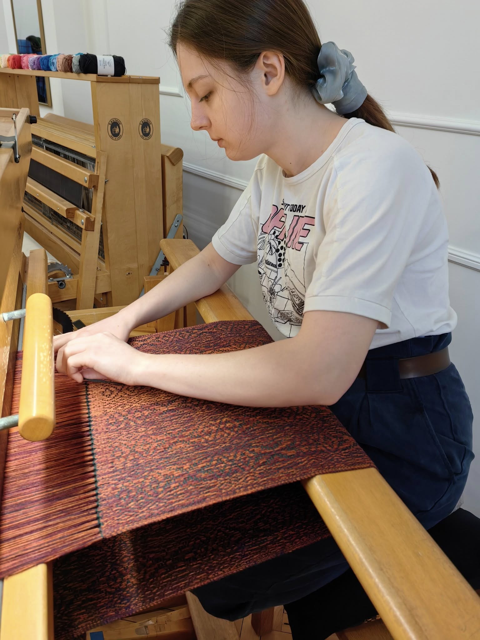 W mojej pracowni gościłam 11 młodych osób w wieku 10–15 lat z różnych szkół podstawowych z Białegostoku i okolic. Każdy uczestnik podszedł do tkania z ogromną ciekawością, zaangażowaniem i otwartością na nowe doświadczenia.