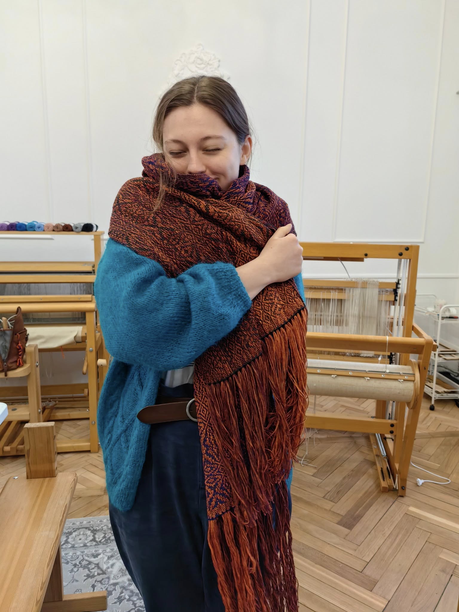 Efektem jest jej pierwszy własnoręcznie utkany szal